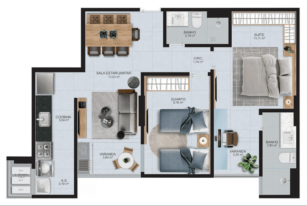 Com apartamentos de 03 quartos com 01 suíte de 89,96 metro quadrados.