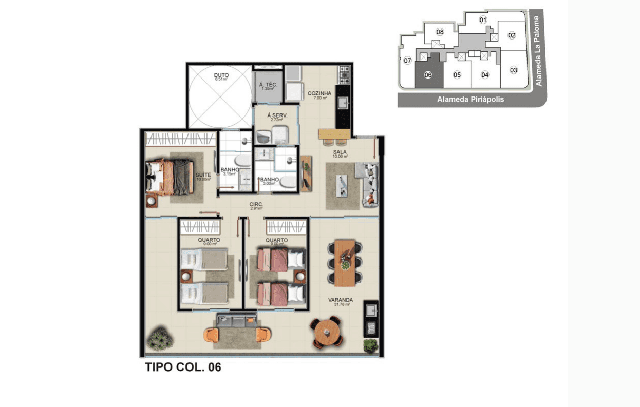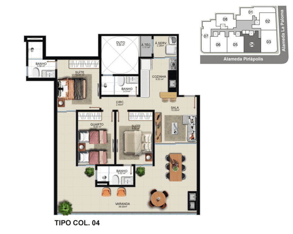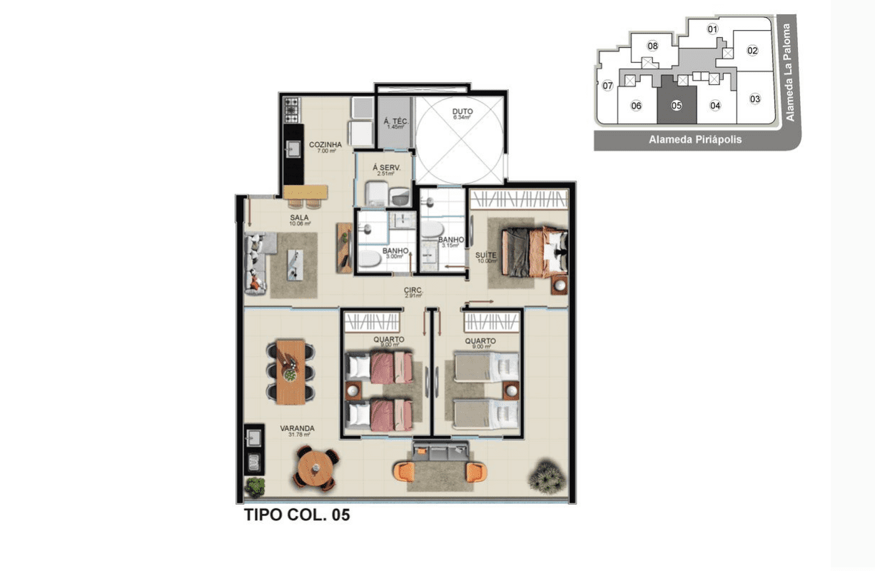 Oferecemos unidades com opções de 2 e 3 quartos, projetadas para atender a diferentes estilos de vida. Os apartamentos de 3 quartos possuem suítes, proporcionando ainda mais conforto e privacidade. Todos os espaços contam com acabamento de alto padrão, piso em porcelanato e infraestrutura completa para ar-condicionado.