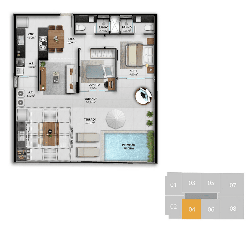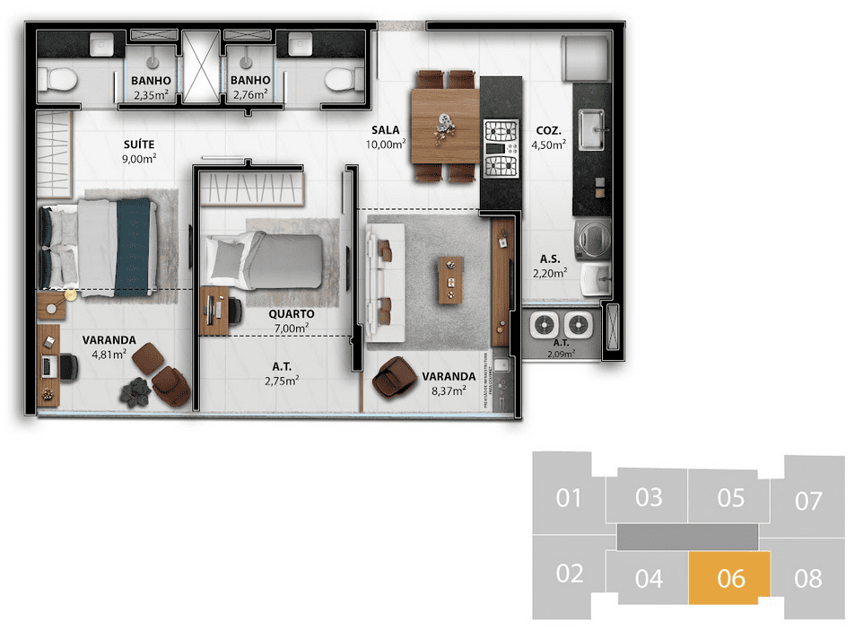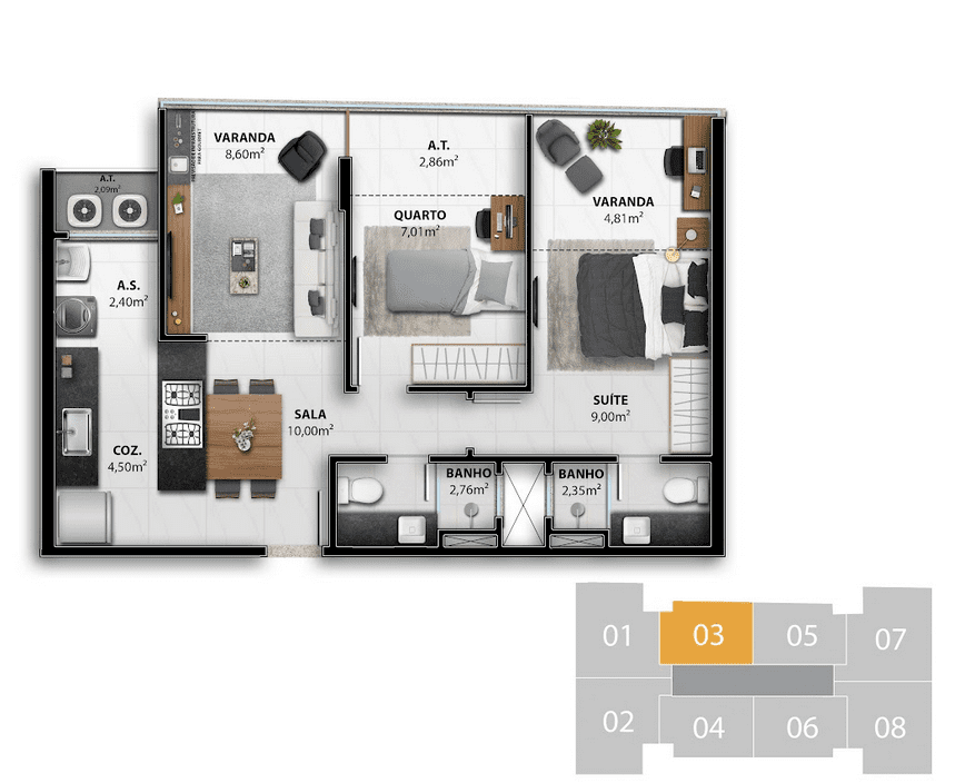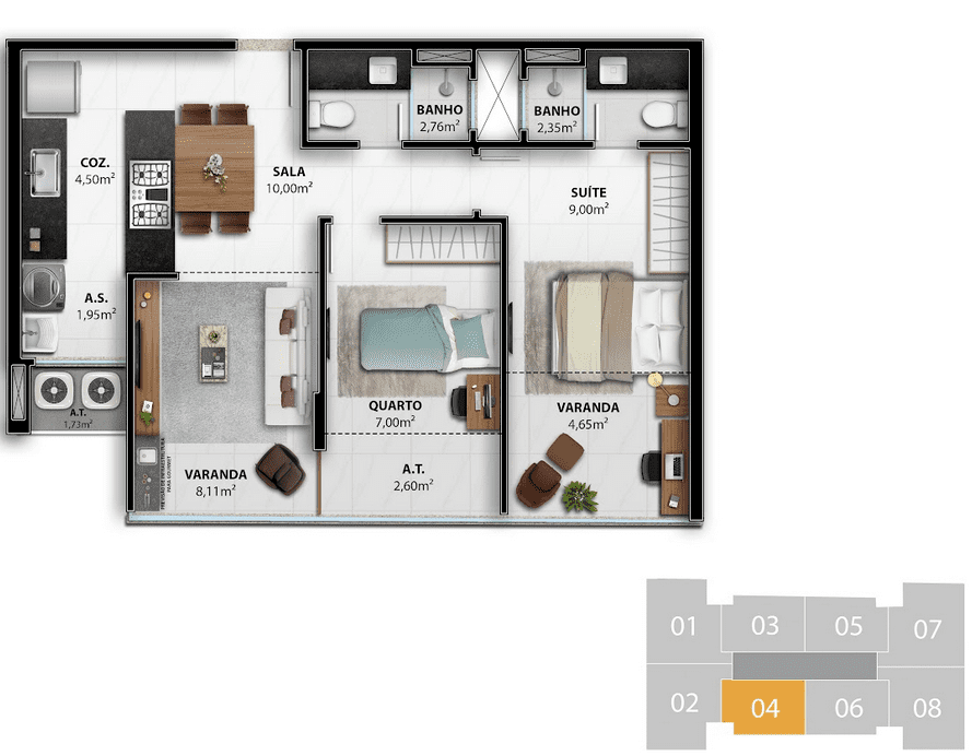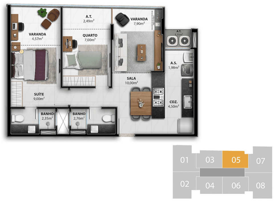 2, 3 quartos
