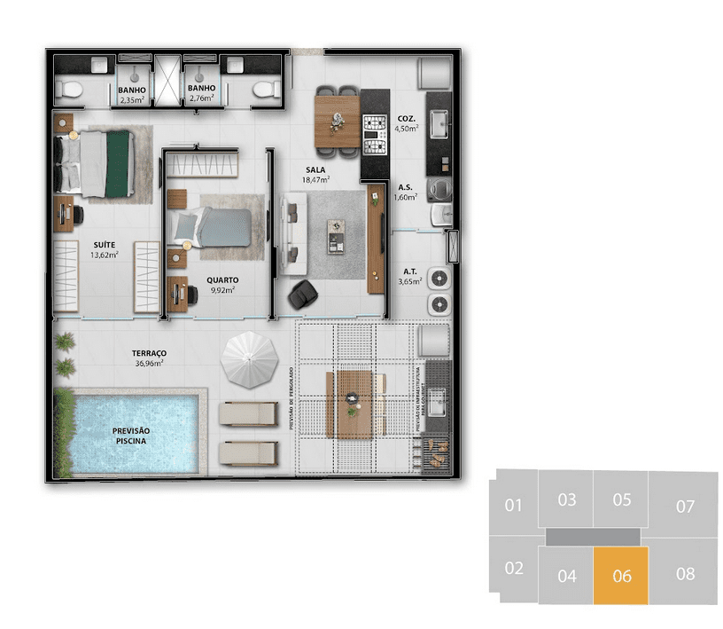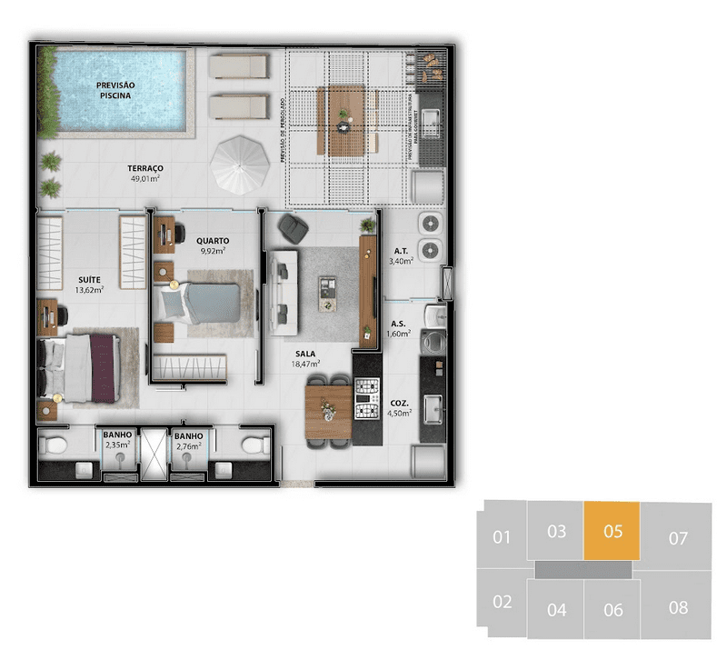 Área comum entregue montada e decorada